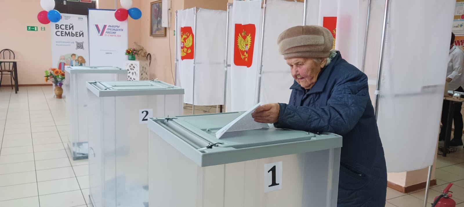 На выборах Президента России проголосовала 96-летняя Желобай Анастасия Захаровна, которая решила проголосовать не на дому, а прийти на избирательный участок.