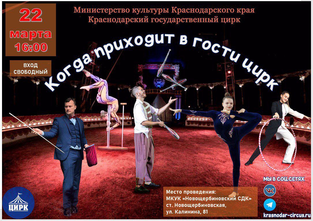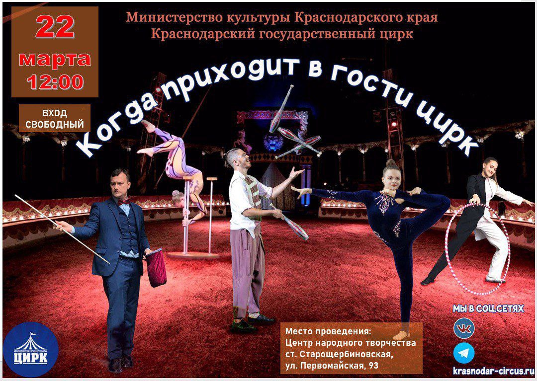 Приглашаем всех жителей района на цирковое представление. Краснодарский государственный цирк покажет выездную гастрольную программу в Щербиновском районе. Представления пройдут