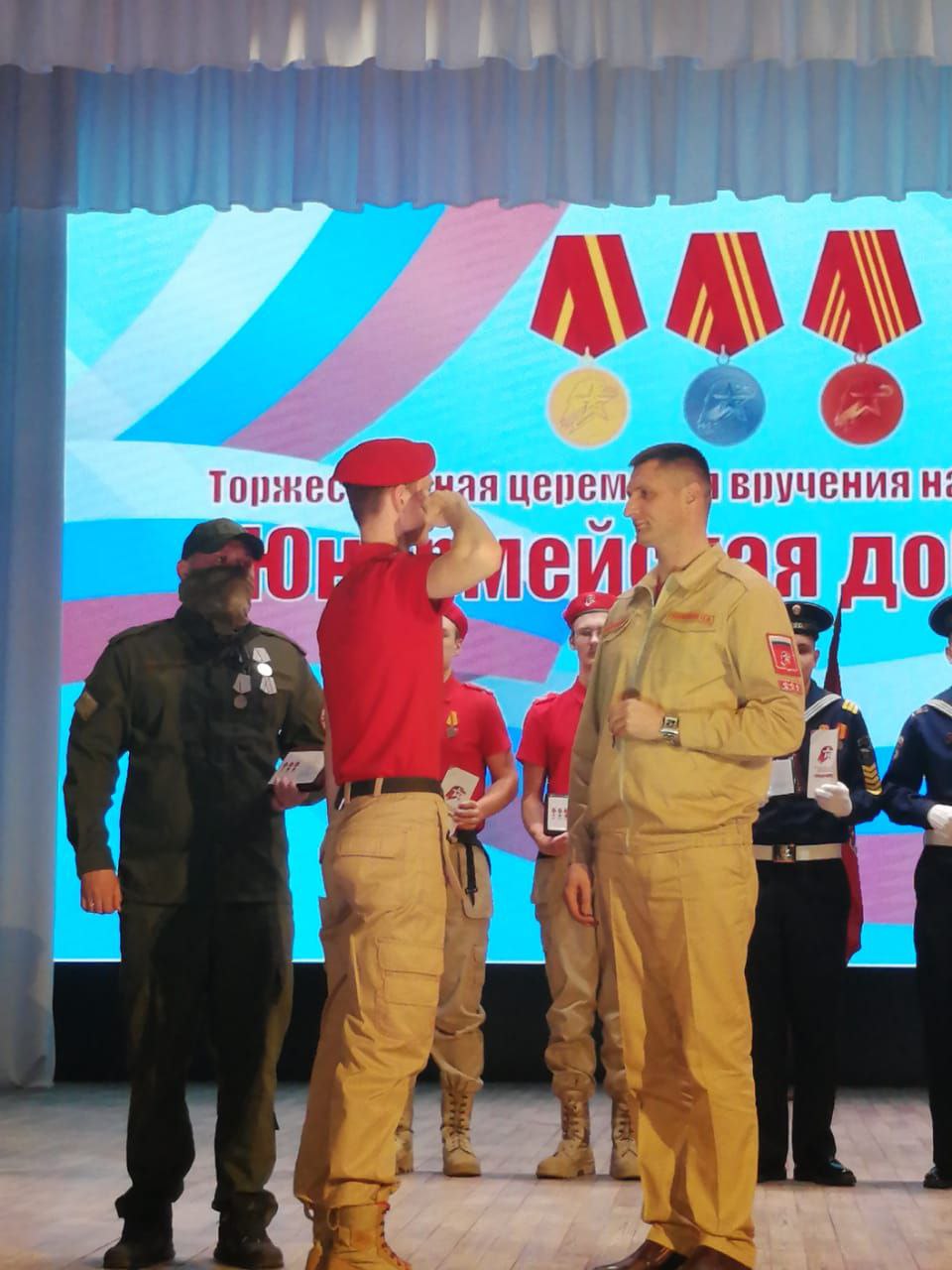 Прошла торжественная церемония награждения с вручением нагрудных знаков отличия "Юнармейская доблесть"
