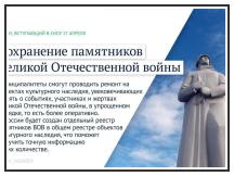 Это ответ на запрос наших граждан. «Наливайки» днём работают как магазины, а ночью торгуют алкоголем, привлекая со всей округи асоциальных посетителей. Закон даёт регионам все возможности навести порядок в этой сфере. Также вводится упрощённая процедура ремонта памятников Великой Отечественной войны. Важно хранить память о подвиге наших дедов и прадедов, передавать следующим поколениям правду о том, какой ценой досталась Победа.