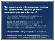 Дети стали чаще получать угрозы, их пытаются вовлечь в противоправные действия. Что с этим делать? Читайте, сохраняйте памятку и делитесь ею со своими близкими. https://t.me/forpost112bot