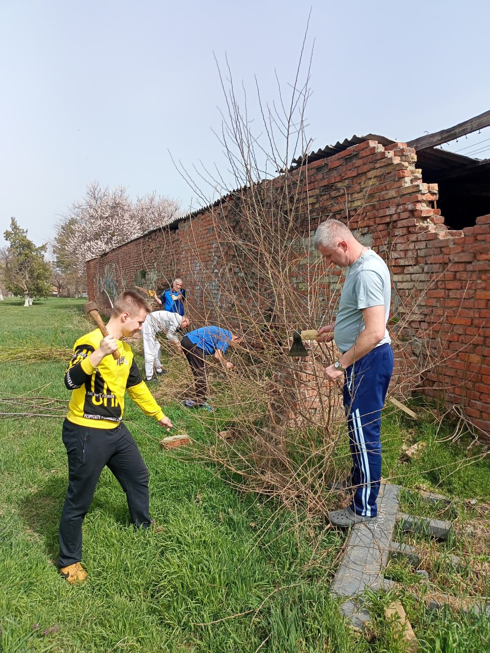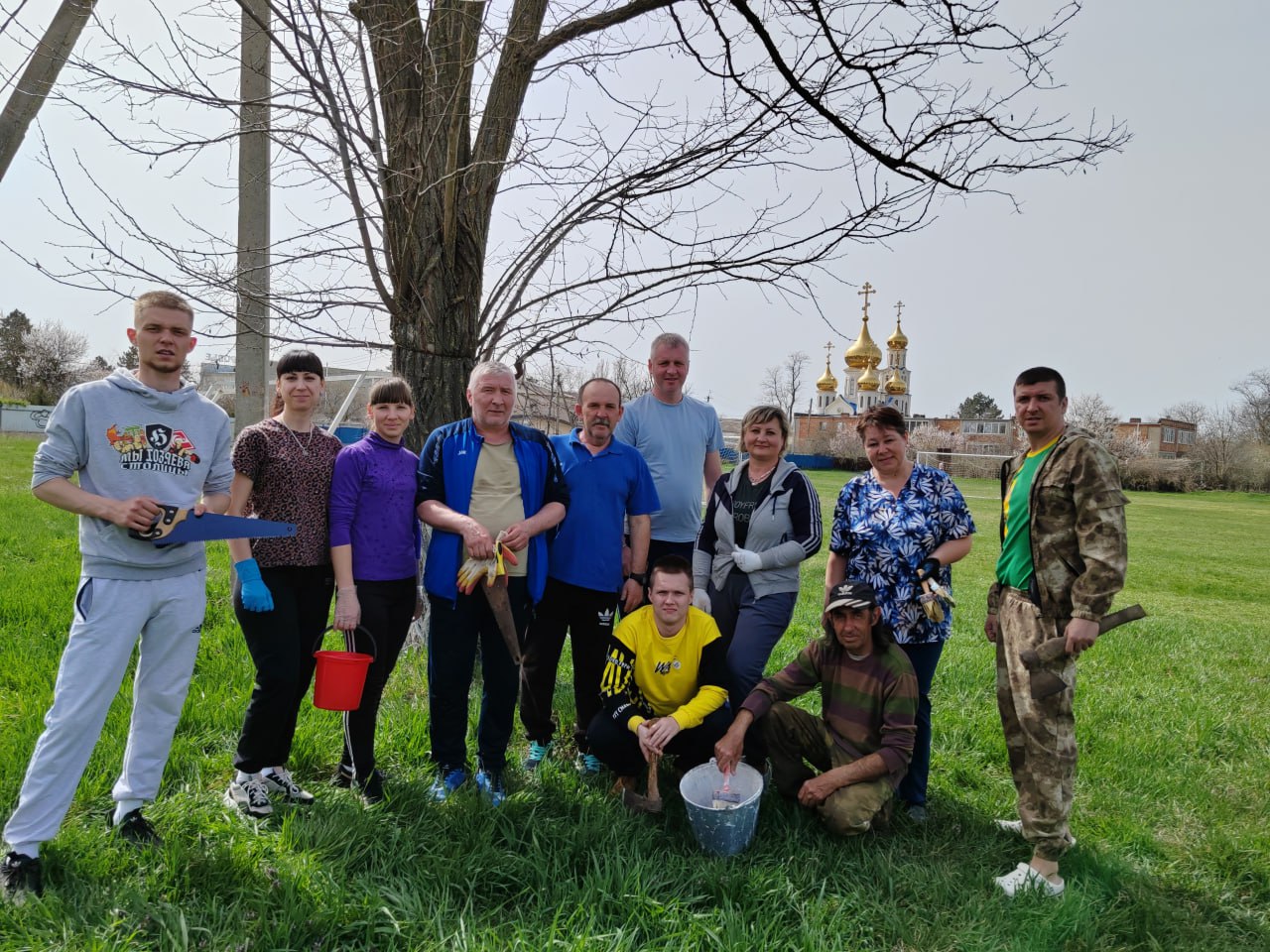 На днях коллектив спортивной школы вышел наводить порядок на территории учреждения, футбольном поле и летней волейбольной площадке. Вооружившись необходимым инвентарем, тренеры-преподаватели очистили территорию футбольного поля от поросли и мусора. Все трудились с большим душевным подъемом, каждому нашлась работа: кто-то белил деревья, кто - то косил траву, кто - то красил, собирал в мешки и относил в мусорные баки. Приятно было видеть результат своего труда, каждый внес в это дело частичку своего тепла, чистая территория нашей спортивной школы радует глаз всех окружающих, везде чисто и красиво. Субботник прошел очень воодушевленно и активно. Все были довольны собой и работой, которую сделали, ведь если каждый будет поддерживать чистоту и порядок на своих территориях, то и весь наш район станет чище и ухоженней.