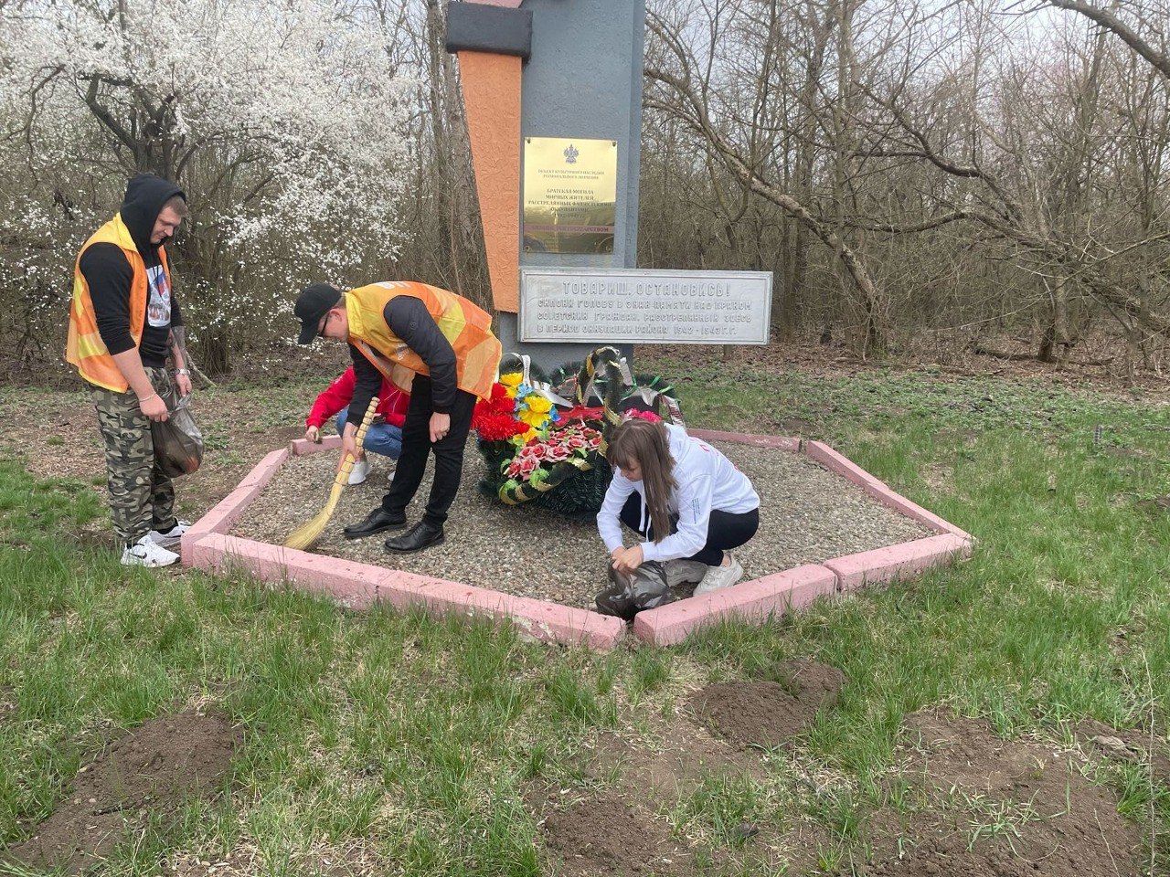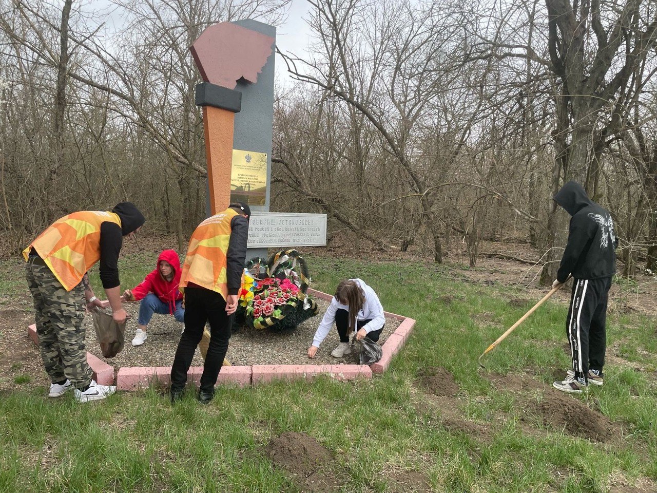 Волонтеры навели порядок на прилегающей территории Братской могилы мирных жителей