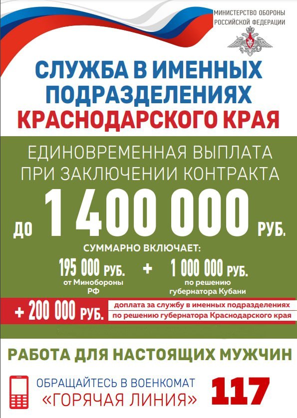О том, как подать заявку на службу, о льготах и мерах поддержки контрактников и их семей читайте на сайте: службапоконтракту.рф, в телеграм-канале Объясняем.рф и по телефону 117. Подать заявление можно через портал Госуслуги или обратившись в пункт отбора по адресу: г. Ейск, ул. Бердянская, д. 125 кабинет № 40, кабинет № 6 или по телефону: 8(86132) 2-52-30.