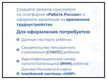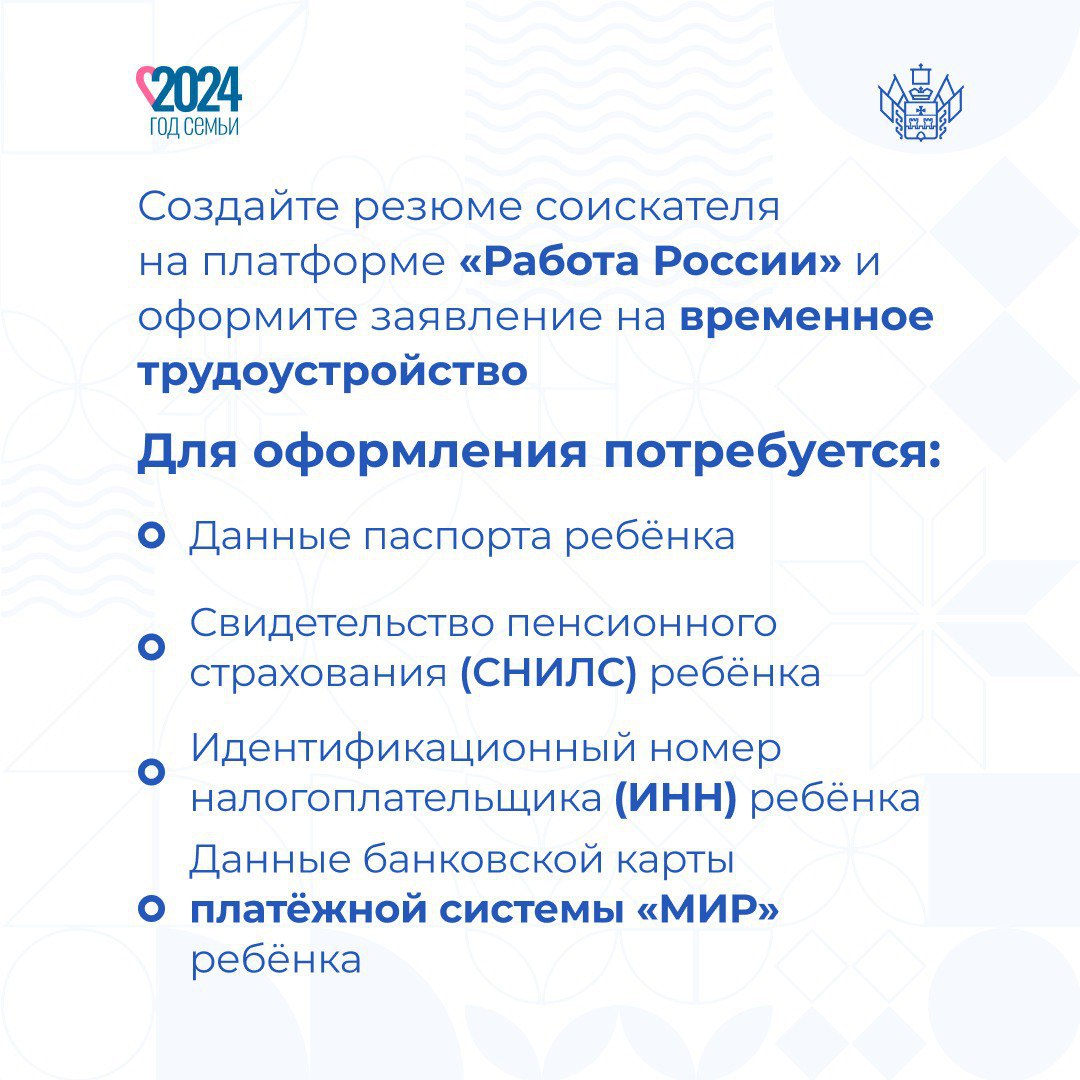 Подработка на лето — возможность для ребёнка почувствовать себя финансово независимым и получить ценный опыт. Собрали в карточках пошаговую инструкцию по трудоустройству подростков. Вы можете обратиться в центр занятости своего муниципалитета, где на месте помогут с регистрацией и оформлением, адреса и телефоны по ссылке clck.ru/39xcSg