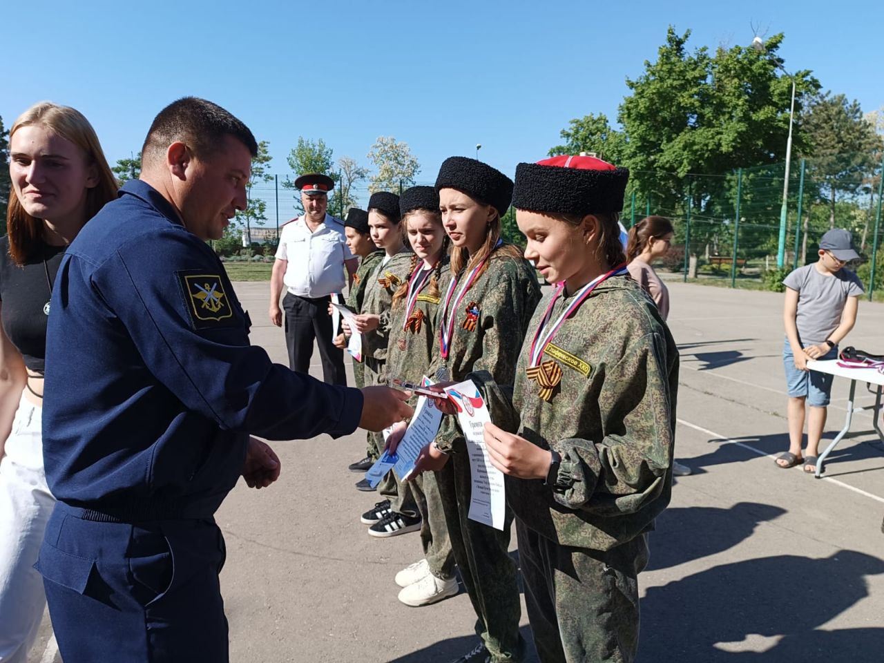 Открыли мероприятие исполняющий обязанности атамана Щербиновского районного казачьего общества Виталий Подолянко, председатель местного отделения ДОСААФ России в Щербиновском районе Александр Даценко и участник специальной военной операции на территории Украины Алексей Естифеев. Они пожелали юным патриотам удачи в забеге и поздравили всех с праздником Победы.