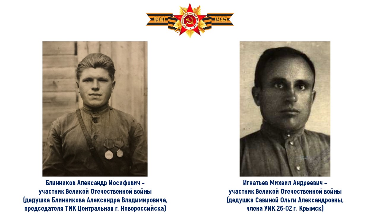 Избирательная комиссия Краснодарского края в честь празднования 79-ой годовщины Победы в Великой Отечественной войне размещает информацию о ветеранах и тружениках тыла – членах семей организаторов выборов Краснодарского края.