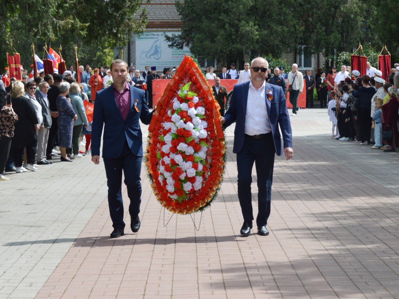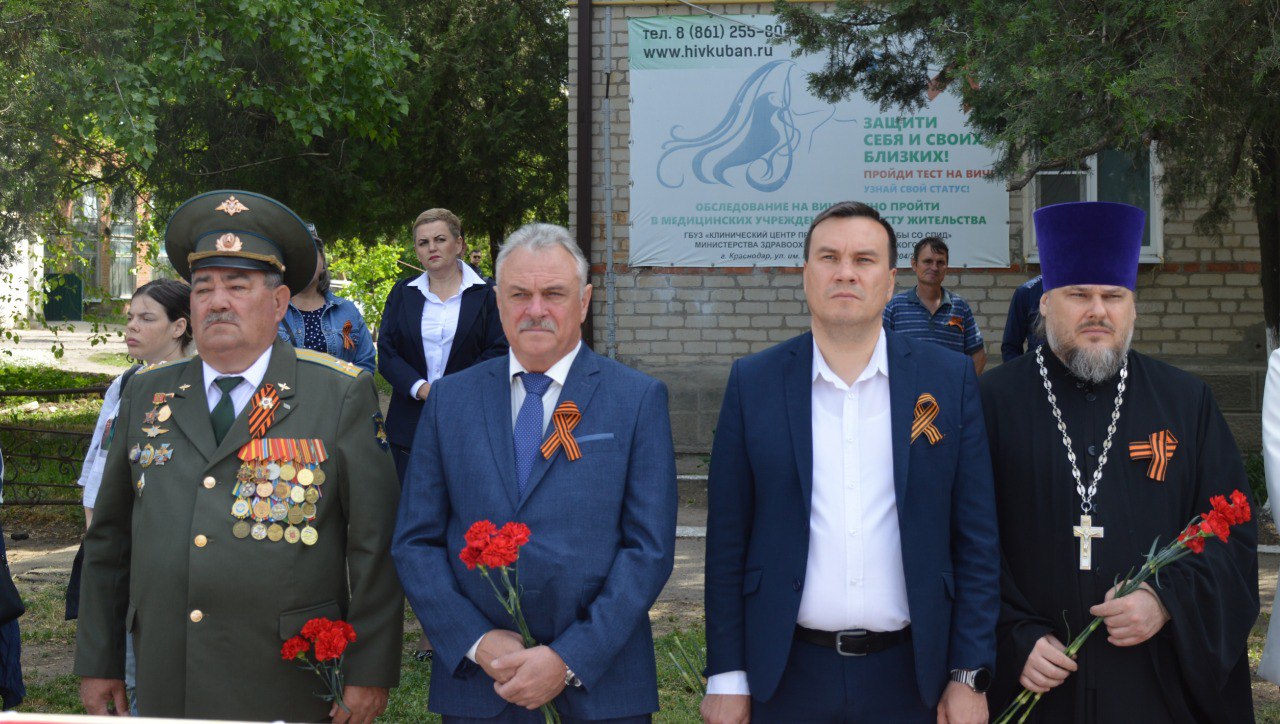 Сегодня в станице Старощербиновской прошёл митинг, посвящённый 79-ой годовщине Великой Победе