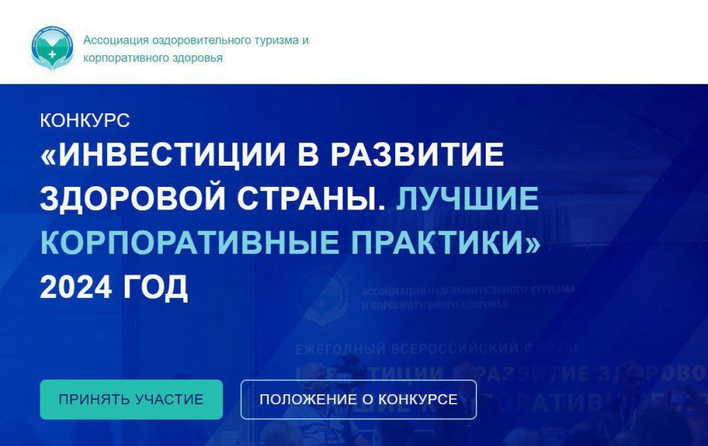 Ассоциацией оздоровительного туризма и корпоративного здоровья г. Москва объявлено проведение Всероссийского ежегодного конкурса "Инвестиции в развитие здоровой страны. Лучшие корпоративные практики – 2024".