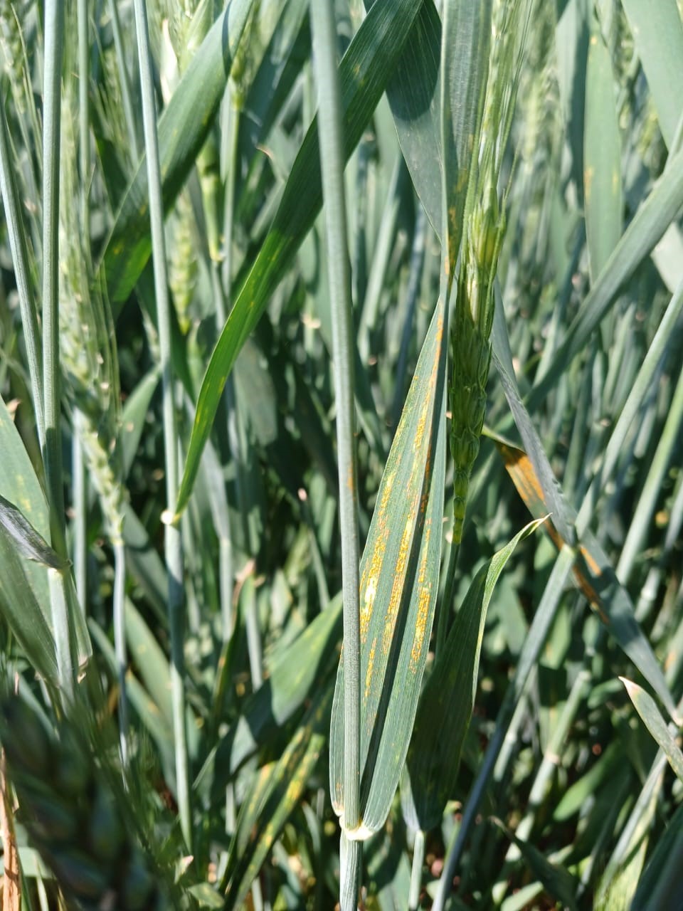 В настоящее время в отдельных районах края отмечается нарастание желтой ржавчины, особенно на сортах озимой пшеницы Собербаш, Школа, Гром и др. Болезнь проявляется очагами и поражает подфлаговый и флаговый листья.