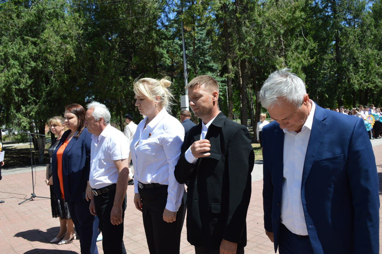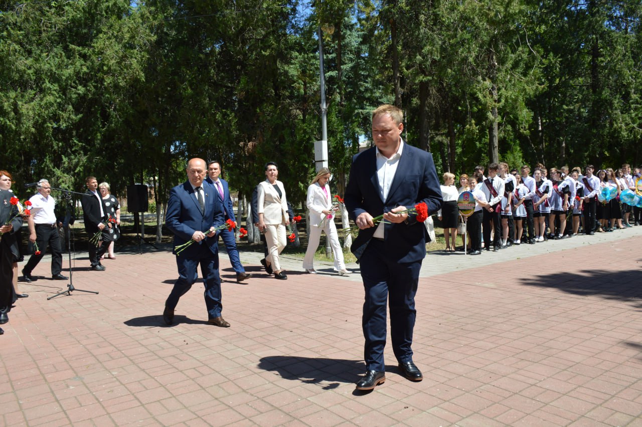 Выпускники 2024 года почтили память тех, кто защищал нашу Родину в тяжёлые времена, кто спас мир от фашизма. Со знаменательной даты 9 мая 1945 года прошло уже 79 лет, но мы помним и знаем имя победителя. К ребятам обратились исполняющий полномочия главы района Сергей Дормидонтов и председатель Совета муниципалитета Михаил Кряжов. «Дорогие ребята, помните и гордитесь поколением победителей, которые, не жалея собственной жизни, шли навстречу Великой Победе. И пусть их подвиг и беззаветное служение Родине будут для нас примером силы духа, мужества и патриотизма. Всегда помните о самом дорогом: о родителях, семье и, конечно, о своих учителях, о светлых школьных годах. Любите Россию, трудитесь на благо страны, которая дает большие возможности для самореализации. Будьте достойны наших героических предков и современников, равняйтесь на них. Не сомневаюсь, что будущее нашего Отечества в надежных руках, ведь у нас замечательная, активная, патриотичная молодежь», - отметил Сергей Юрьевич.