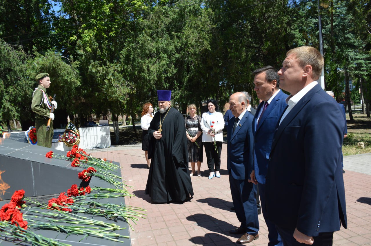 Сегодня у мемориального комплекса в честь земляков, погибших в годы гражданской и Великой Отечественной войн прошёл торжественный митинг «Мы наследники Победы, славу Родины храним».