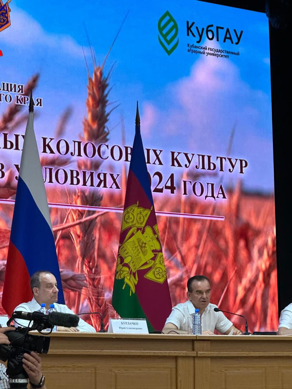 Традиционно в преддверии уборочной кампании Губернатор Кубани Вениамин Кондратьев провел краевое предуборочное совещание. В совещании приняла участие и делегация нашего муниципалитета, которую возглавил заместитель главы района, начальник отдела по вопросам агропромышленного комплекса Сергей Никишин. Губернатор нацелил аграриев на проведение летней страды за 15 дней, чтобы не потерять в качестве и урожайности зерна.