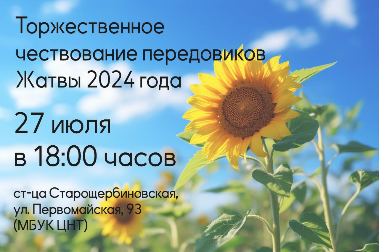 Дорогие жители района, приглашаем вас 27 июля на праздничные мероприятия, которые пройдут в Центре народного творчества станицы Старощербиновской.