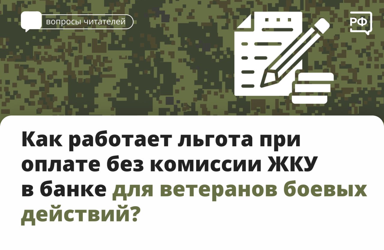 С 1 июля льготные категории россиян, в том числе ветераны боевых действий, могут оплачивать в банке услуги ЖКХ без комиссии. Для этого: просто отсканируйте с помощью банковского приложения в телефоне QR-код на квитанции. Банк сам поймёт, что у вас есть льгота, и не будет списывать комиссию; или оплатите квитанцию в ближайшем отделении банка — не забудьте взять с собой удостоверение ветерана боевых действий.