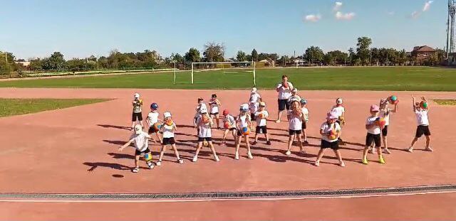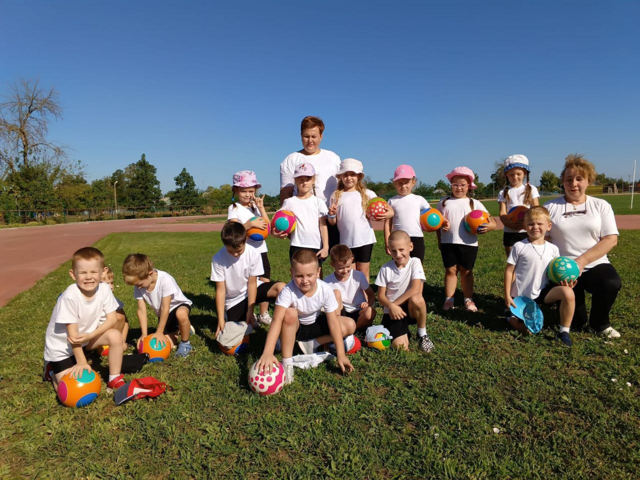 Как известно, утро начинается с утренней зарядки и конечно, любимая детьми физкультура на свежем воздухе. Так начался день 13 августа на стадионе «Центральный» имени А.П. Балуто станицы Старощербиновской у ребят детского сада №5 «Радуга». Утренняя зарядка – это лучший способ получить заряд бодрости на целый день. Заряжает весь организм человека положительной энергией. Замечательная пора – лето, солнце, воздух, жизнерадостная, веселая музыкальная композиция и инструктор-методист Центра физкультурно-массовой и спортивной работы с населением Ольга Деревянко зарядили участников энергией, хорошим настроением и верой в победу! Ребятам был предложен комплекс простой, но очень полезной зарядки. Вооружившись хорошим настроением, под музыкальное сопровождение ребята старательно повторяли упражнения с мячом, которые в дальнейшем помогут выполнить нормативы ВФСК ГТО. В завершении зарядки – оздоровительный бег. Как отметила Ольга Александровна – естественные факторы природы (солнечные лучи, свежий утренний воздух) закаляют организм, повышают сопротивляемость простудным заболеваниям. Дети получают удовольствие от таких занятий. Такие мероприятия повышают интерес у детей к физической культуре и здоровому образу жизни. Они не только получают радость от своих результатов, но и учатся переживать за товарищей, чувствуя себя участниками большой спортивной команды.