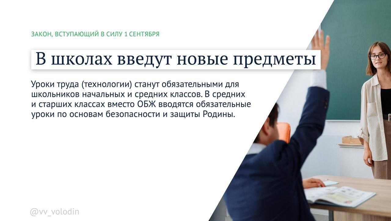 Какие законы вступают в силу в сентябре. С нового учебного года в школах станут обязательными уроки труда, а вместо ОБЖ появится предмет «Основы безопасности и защиты Родины».
