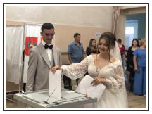Супруги сразу после бракосочетания решили зайти на свой участок № 57-11 и проголосовать.
