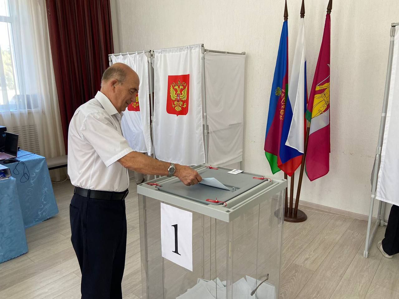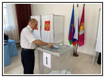 На избирательном участке № 57-03 проголосовал председатель Совета муниципалитета, председатель Щербиновского районного совета ветеранов Михаил Кряжов.