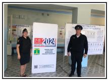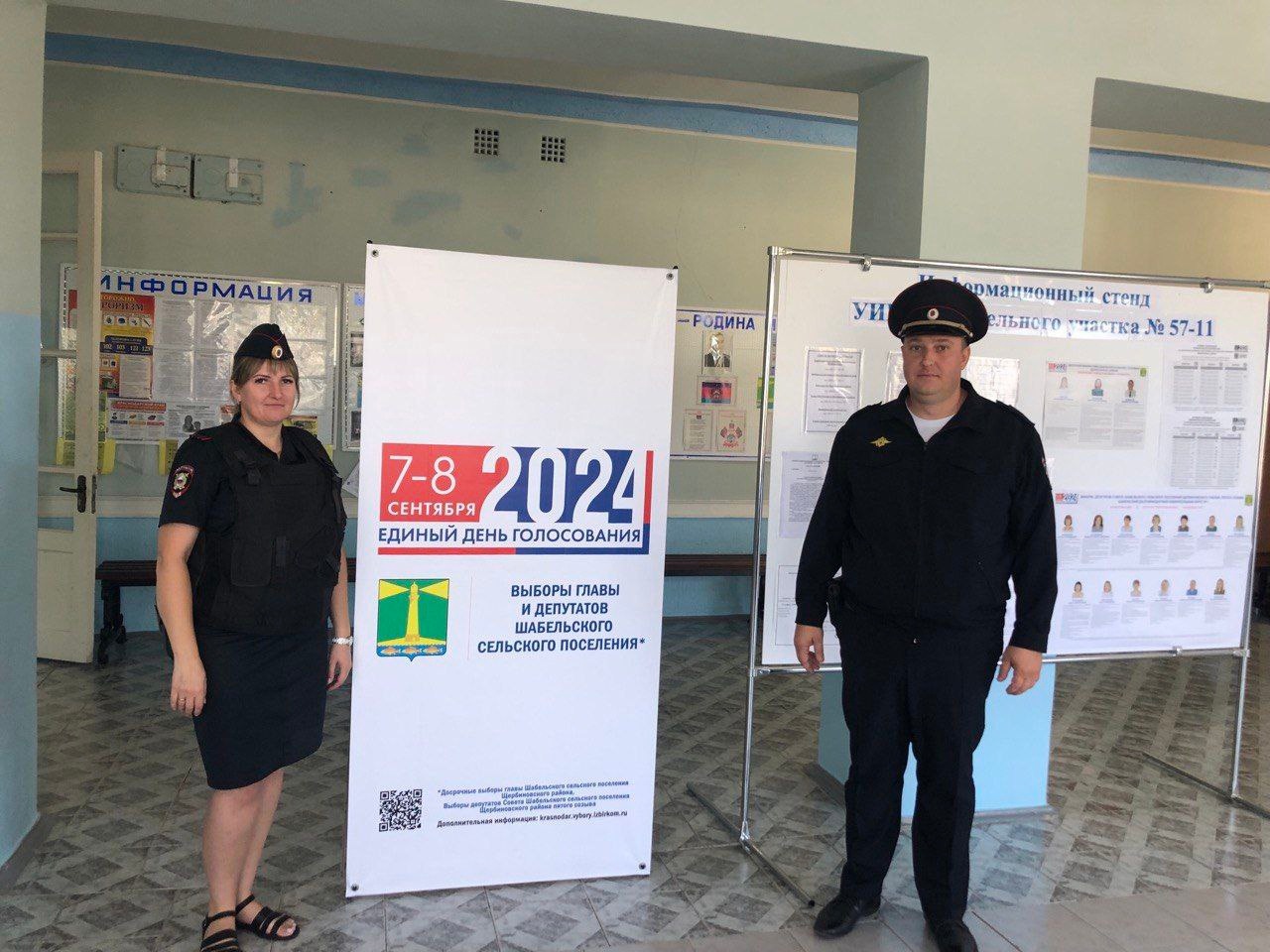 На избирательных участках сотрудники полиции, казаки и представители спецведомств обеспечивают порядок и безопасность на всех избирательных участках Щербиновского района.