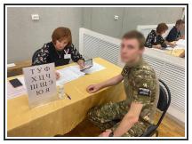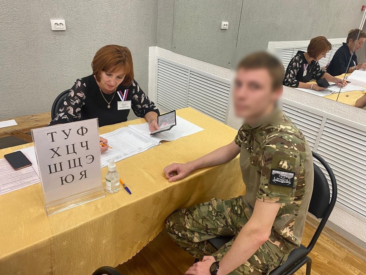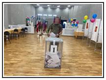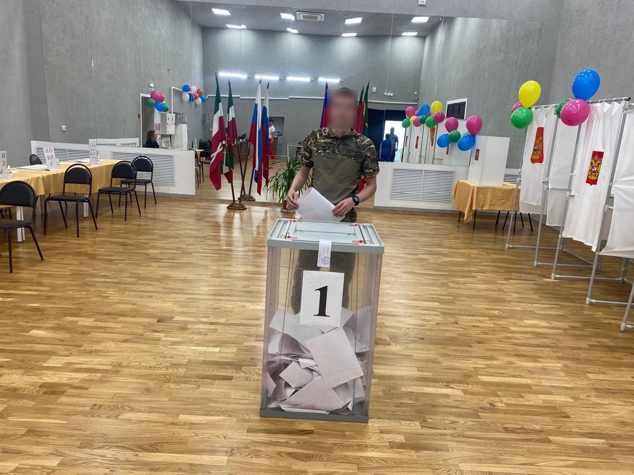 В селе Ейское Укрепление на избирательном участке № 57-13 свой голос за будущее района пришел отдать участник СВО Максим.