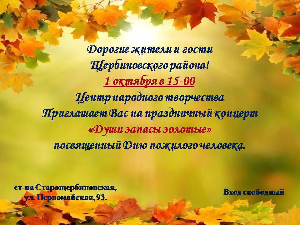Уважаемые жители района, приглашаем вас 1 октября в 15.00 на праздничный концерт, посвящённый Дню пожилого человека.