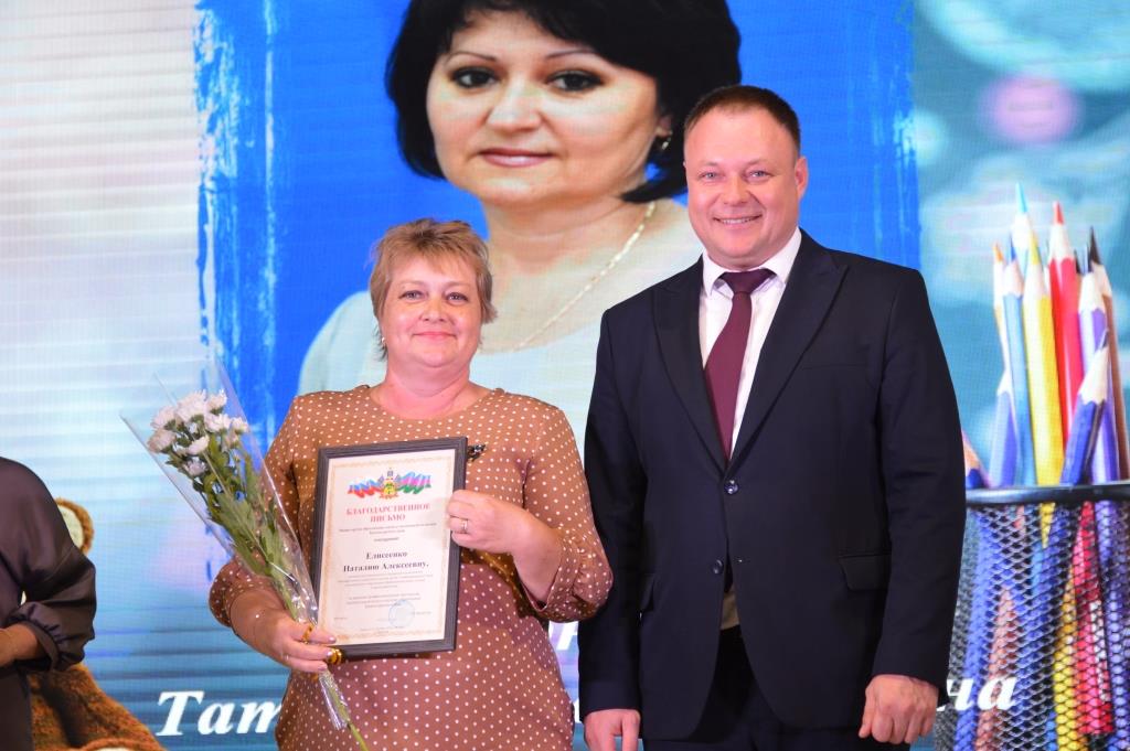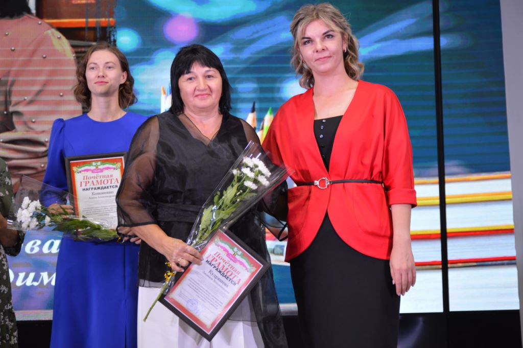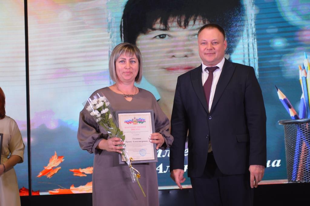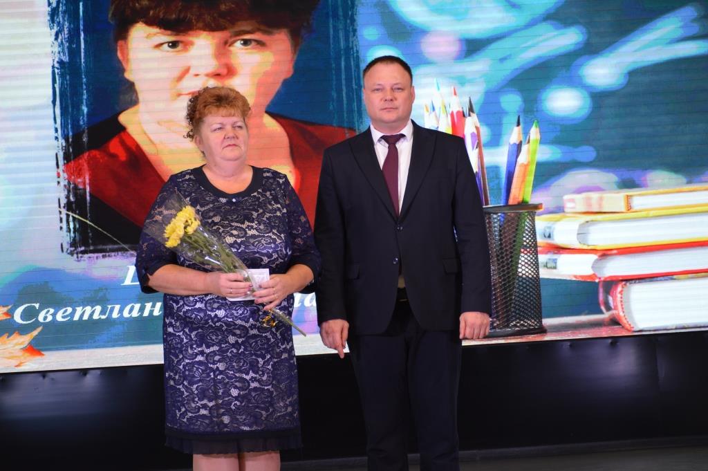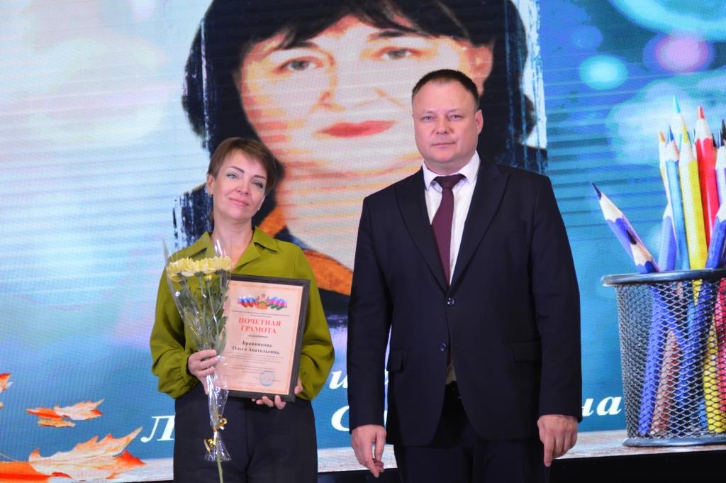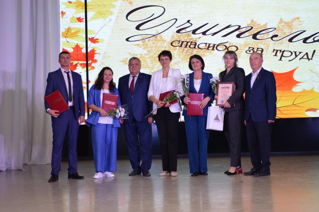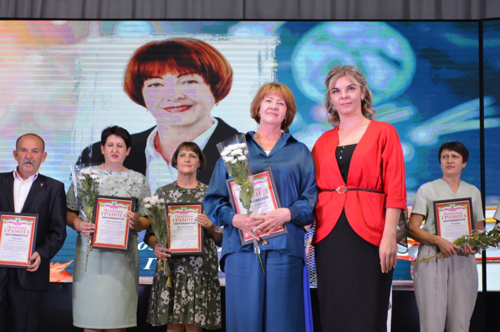 Сегодня в Центре народного творчества станицы Старощербиновской прошла церемония награждения педагогов Щербиновского района, а также праздничный концерт, посвящённый Дню учителя. С наступающим праздником учителей района поздравили депутат Законодательного Собрания Краснодарского края Владимир Лыбанев, исполняющий полномочия главы района Сергей Дормидонтов, председатель Совета муниципалитета Михаил Кряжов, заместитель главы района Ирина Киселева, благочинный Щербиновского церковного округа, настоятель храма Покрова Пресвятой Богородицы станицы Старощербиновской протоиерей Василий Кривов, исполняющий обязанности начальника управления образования Ольга Гуро. Бурными аплодисментами педагоги поблагодарили за профессионализм и преданность важному делу ветеранов педагогического труда. За многолетнюю, добросовестную работу, за значительные заслуги перед отраслью Нагрудный знак «Почетный работник сферы образования Российской Федерации» присвоен Алле Поповой - возглавлявшей среднюю школу №3, Светлане Лобас - директору средней школы № 9, Валерию Закалину– учителю физической культуры средней школы № 1. За профессиональное мастерство, добросовестный и безупречный труд Нагрудный знак «За верность профессии» присвоен Татьяне Закоморной– учителю физической культуры средней школы №1, Светлане Цукановой– директору средней школы № 3. Почетной грамотой министерства просвещения Российской Федерации награждены Станислав Харченко – тренер преподаватель спортивной школы «Лидер», Анжелика Борсук– учитель географии средней школы № 10. За значительный вклад в развитие образования в Краснодарском крае Почетное звание «Заслуженный учитель Краснодарского края» присвоено Ольге Колобердиной - учителю начальных классов средней школы №2. Особые слова были адресованы Ирине Борсук -учителю русского языка и литературы средней школы №10. Сегодня она принимает участие в торжественной церемонии награждения в г. Краснодаре. Она в числе победителей Федерального конкурса на присуждения премии лучшим учителям за достижения педагогической деятельности в 2024 году. Почетной грамотой министерства образования, науки и молодежной политики Краснодарского края награждены Ольга Бражникова– педагог психолог средней школы № 1, Любовь Ефименко– учитель русского языка средней школы № 1, Наталья Кадомцева– заведующая центра развития ребенка-детский сад №5, Надежда Ляшенко– учитель математики средней школы № 11, Ольга Сапотько – директор средней школы № 2. Благодарственное письмо министерства образования, науки и молодежной политики Краснодарского края вручено Валентине Бубновой– воспитателю центра развития ребенка-детский сад № 6, Ирине Головко– воспитателю-детский сад №7, Наталии Елисеенко– воспитателю-детский сад №7, Елене Ильенко – учителю технологии средней школы № 13,Татьяне Терновой– воспитателю-детский сад №8, Людмиле Точкиной– воспитателю центра развития ребенка-детский сад №5, Ирине Чобиток– учителю биологии средней школы № 1 . Дипломом министерства образования, науки и молодежной политики Краснодарского Победителя краевого конкурса «Лучшие Педагогические работники дошкольных образовательных организаций» награждена Шепенева Анжела - воспитатель детского сад № 1. Всем присутствующим свои творческие номера
