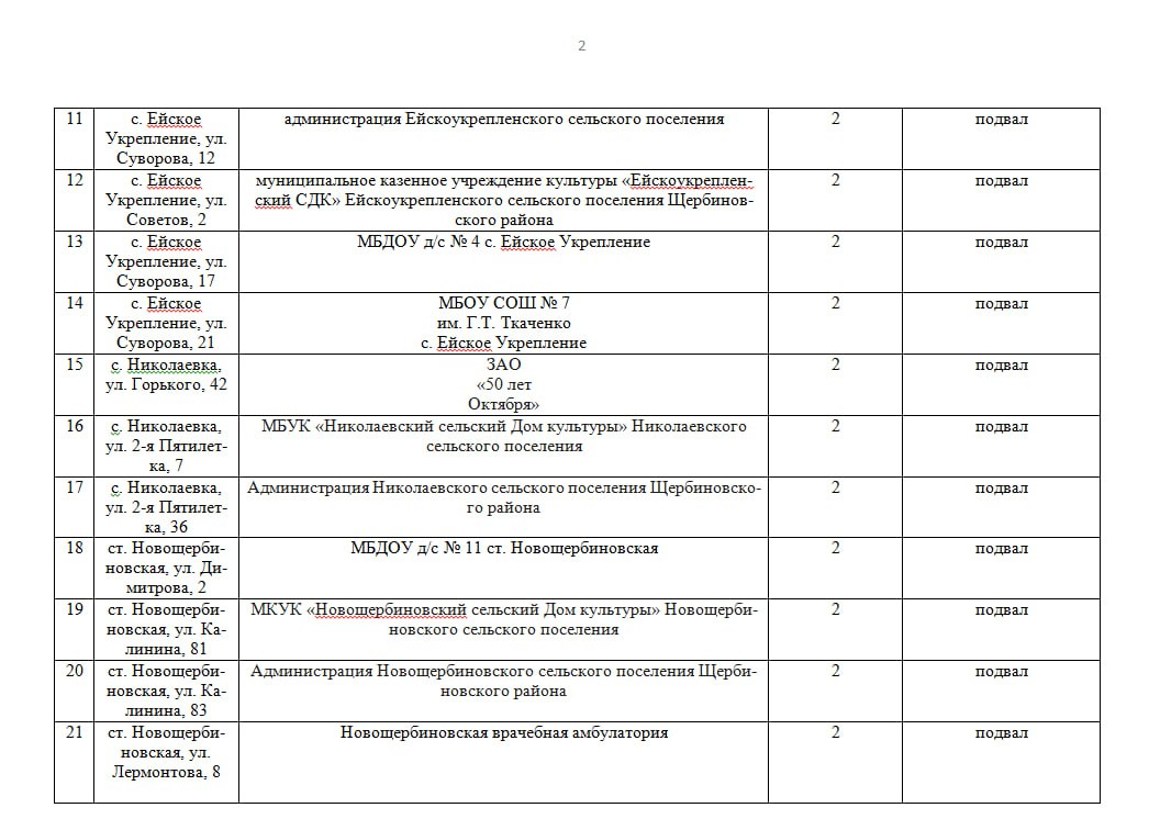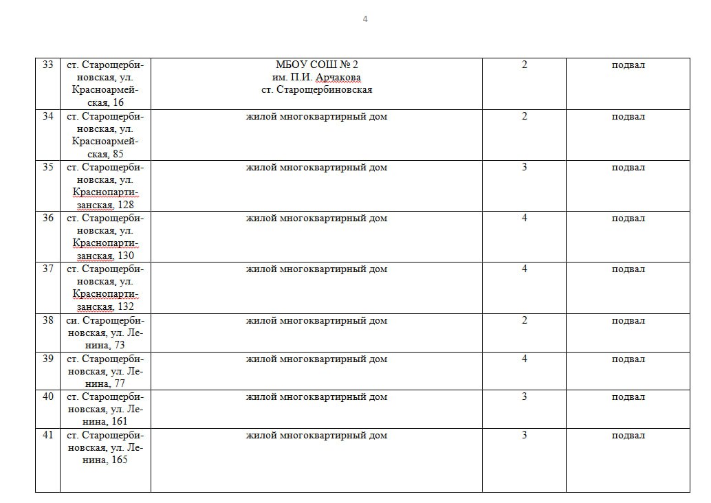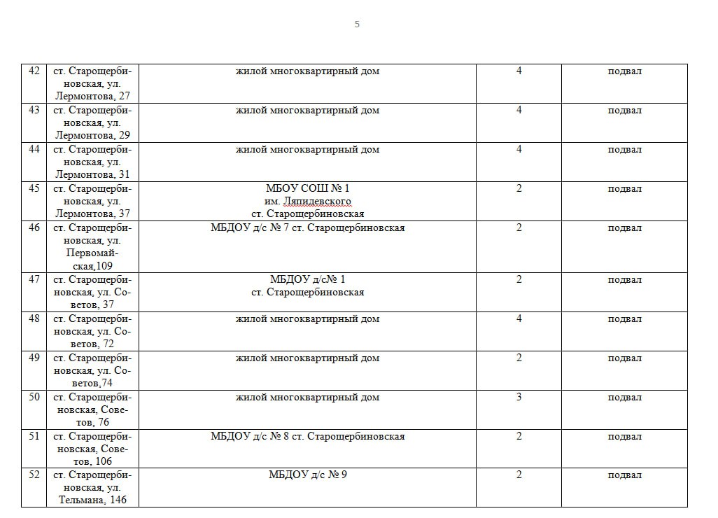 Уважаемые жители Щербиновского района!Напоминаем!Для укрытия от фугасного и осколочного воздействия средств поражения БПЛА используйте цокольные этажи многоквартирных домов, включая частный жилой сектор, подвалы, гаражи, складские и другие помещения, расположенные в отдельно стоящих и подвальных этажах зданий и сооружений, в том числе в торговых и развлекательных центрах, заглубленные, и другие помещения подземного пространства. Публикуем список мест для укрытия населения по району.