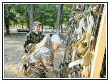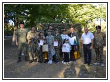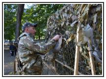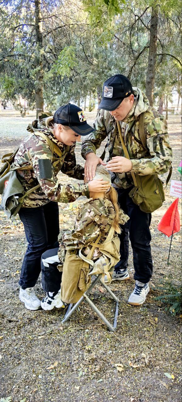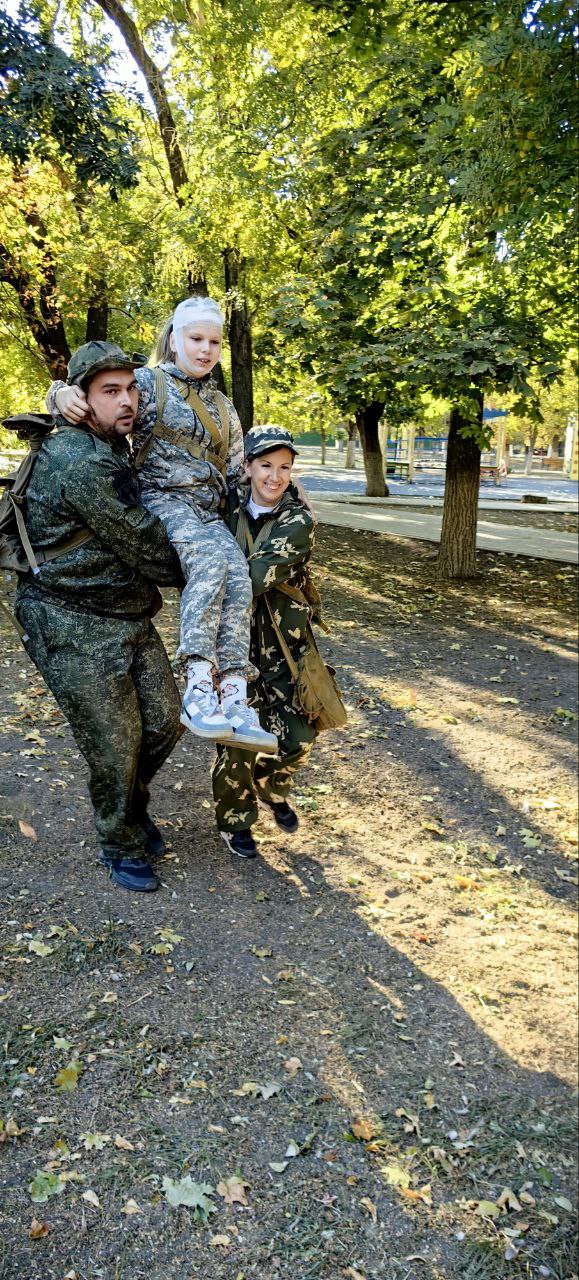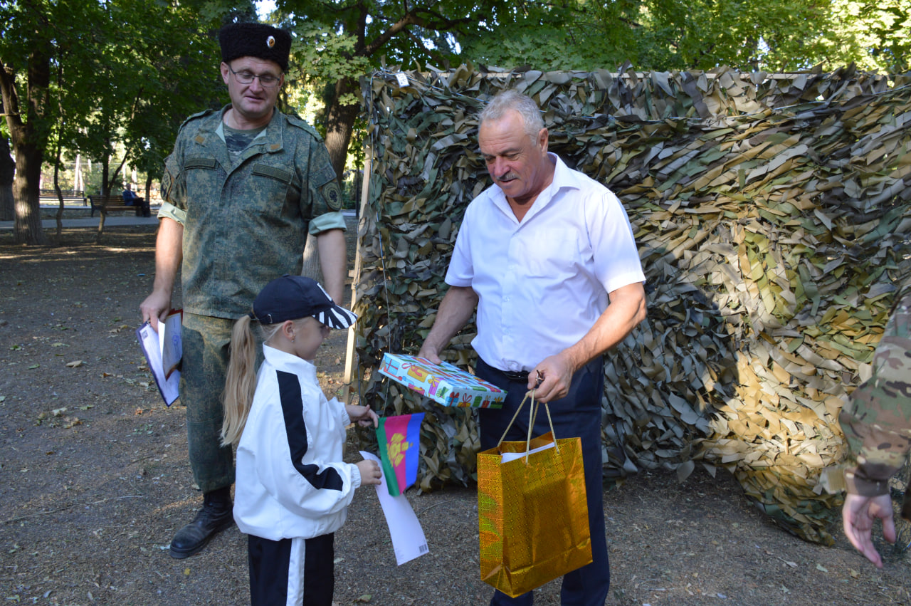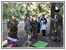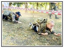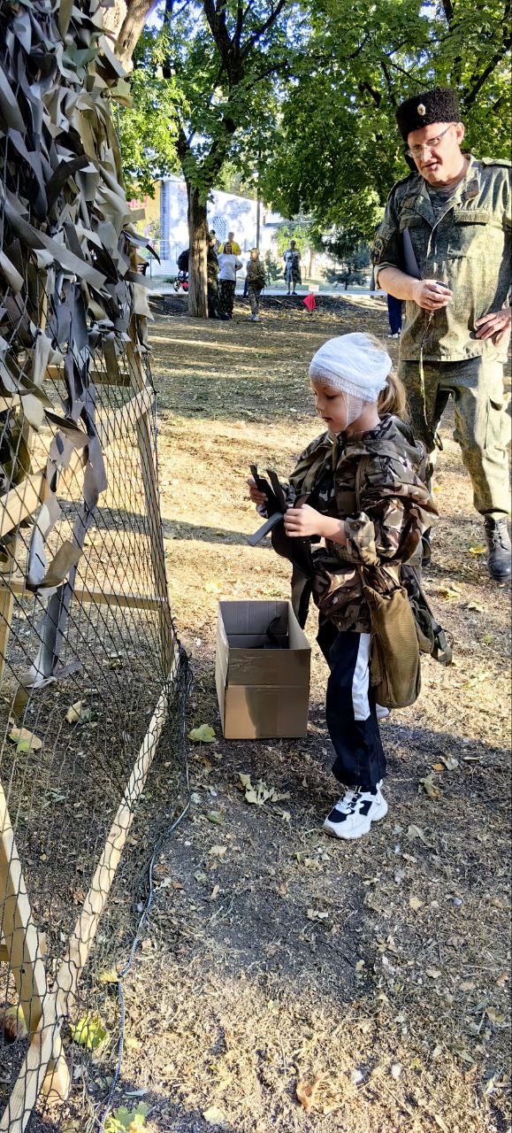 Родители и дети участвовали в различных эстафетах: состязались в стрельбе из пневматической винтовки, разборке и сборке автомата Калашникова, оказании первой медицинской помощи, плетении маскировочной сети.