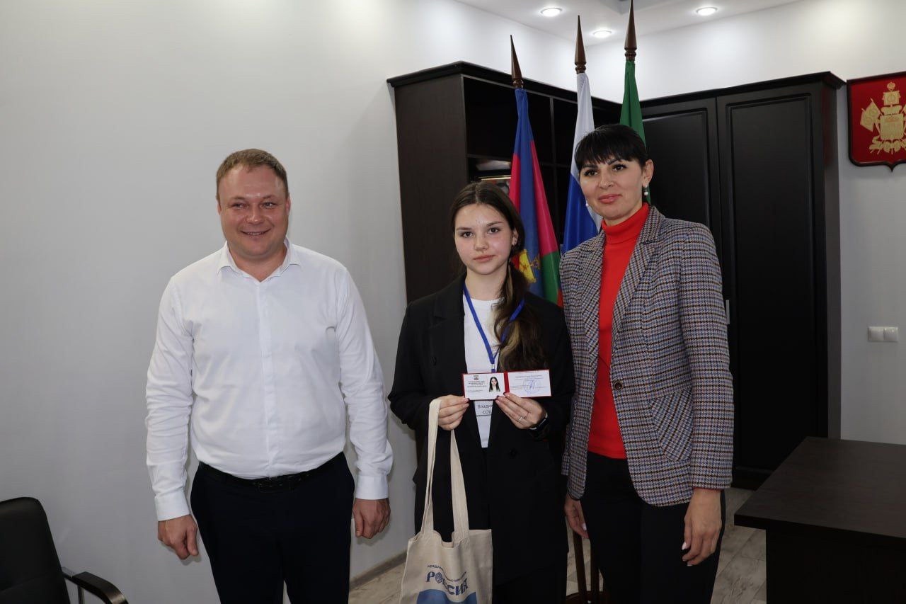 Лидеров школьного ученического самоуправления на встрече поприветствовали Дормидонтов Сергей Юрьевич, заместитель главы Ирина Киселева, председатель территориальной избирательной комиссии Щербиновская Юлия Галкина, исполняющий обязанности начальника управления образования Ольга Гуро, начальник отдела по делам молодёжи Олеся Жидкова.