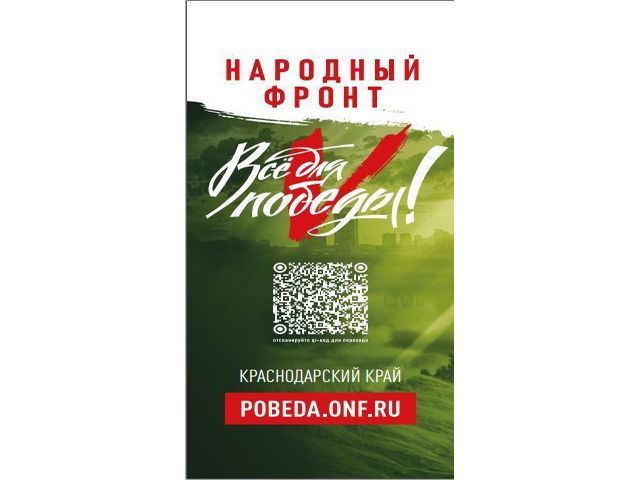Общероссийское общественное движение «Народный фронт «за Россию» (далее – Народный Фронт) реализует проект «Всё для Победы!».
