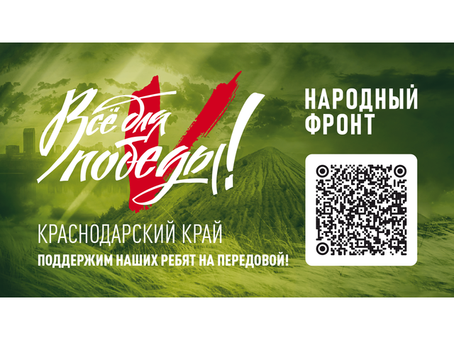 Общероссийское общественное движение «Народный фронт «за Россию» реализует проект «Все для Победы», направленный на поддержку участников СВО и мирного населения Донбасса. Перевести деньги на покупку необходимых вещей можно по QR-коду. Нашим защитникам, мобилизованным для выполнения задач СВО, купят и доставят цифровые рации, тепловизоры, квадрокоптеры, бинокли, прицелы, спальные мешки, медикаменты, продукты питания и все то, что поможет спасти и облегчить их жизнь. На портале https://pobeda.onf.ru/ представлена дополнительная информация о проекте. Региональный исполком Народного фронта, тел. +7 (918) 188-55-45.