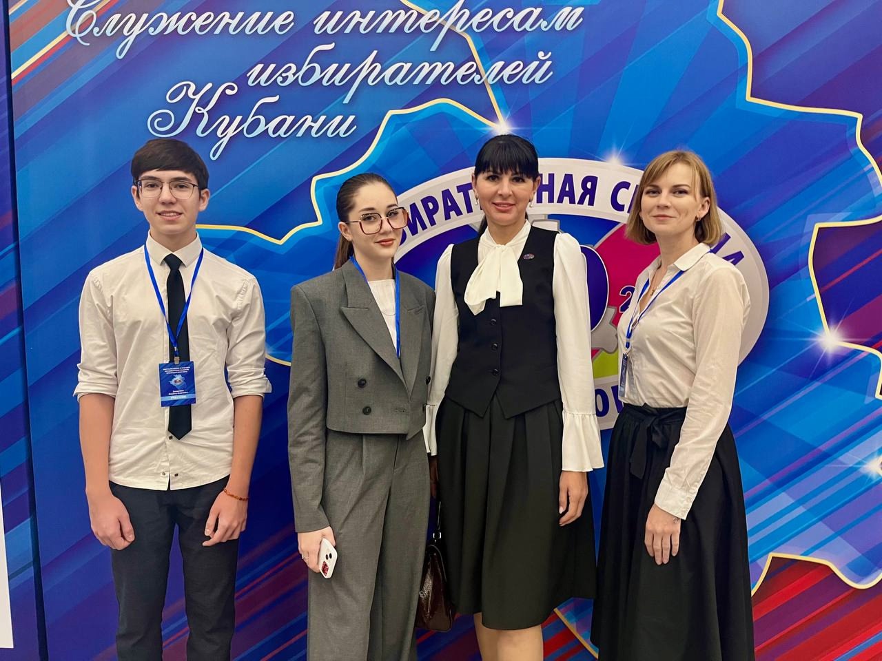 Территориальную избирательную комиссию Щербиновская на форуме представляли Жидкова Олеся, председатель молодежного общественного Совета при ТИК Щербиновская, начальник отдела по делам молодежи, Баранова Яна и Довженко Никита, учащиеся МБОУ СОШ № 1 им. Ляпидевского.