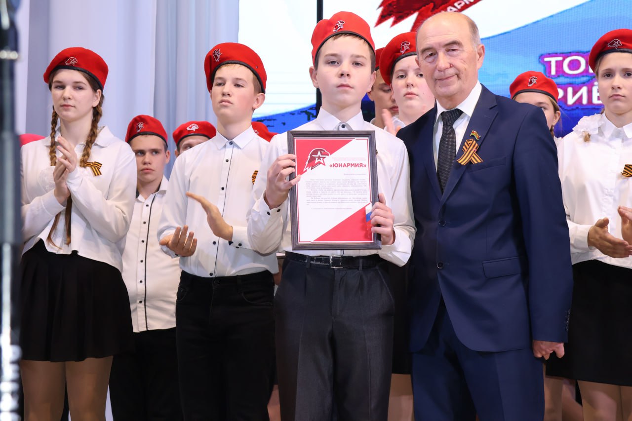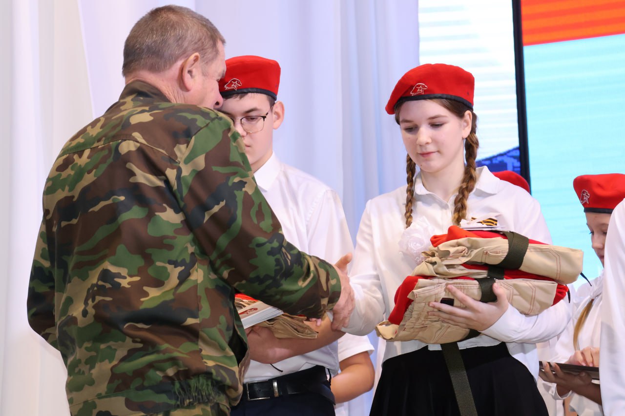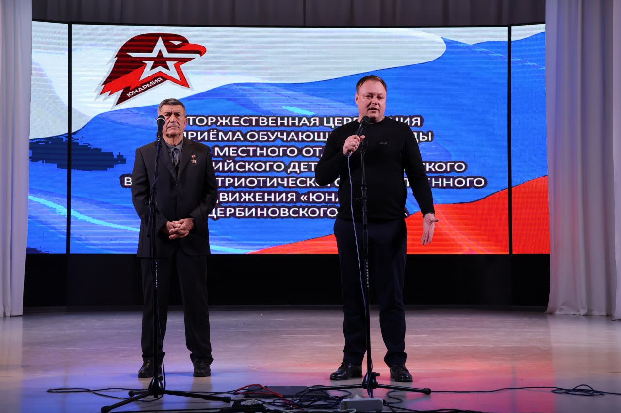 За активную работу в 2024 году и личный вклад в развитие местного отделения Всероссийского детско-юношеского военно-патриотического общественного движения «ЮНАРМИЯ» Щербиновского района Сергей Юрьевич вручил форму «Юнармейца» юнармейскому отряду «Искра» СОШ № 1 им. Ляпидевского и юнармейскому отряду «Альфа» СОШ № 3. Личные книжки юнармейцам вручили Василий Котенко- ветеран Афганской войны, председатель первичной организации, Алексей Фролов -кавалер Ордена Мужества, участник боевых действий в Чечне, старший разведчик, председатель первичной организации «Ветераны боевых действий на Кавказе» и Таранов Дмитрий- ветеран специальной военной операции. В Щербиновском районе местное отделение открыто 1 марта 2022 года. Сегодня в рядах местного отделения «ЮНАРМИЯ» состоит 214 обучающихся школ Щербиновского района. Сегодня ряды Юнармии пополнились еще на 39 обучающихся. #ГероиВнеВремени2024