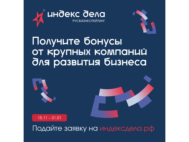 Успейте подать заявку на участие во Всероссийском рейтинге «Индекс дела».