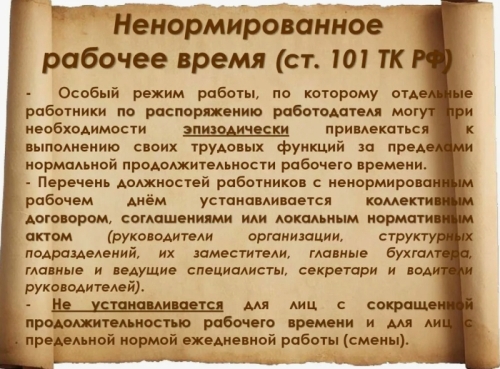 Режим ненормированного рабочего дня включает в себя несколько условий: