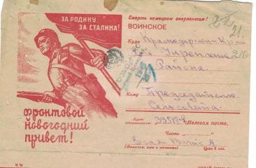 Сохранились и фронтовые письма и трофейные немецкие открытки к Новому году. Одна из открыток солдата Шаповалова Ивана Аникеевича, жителя села Николаевка Щербиновского района, представлена в данном материале.
