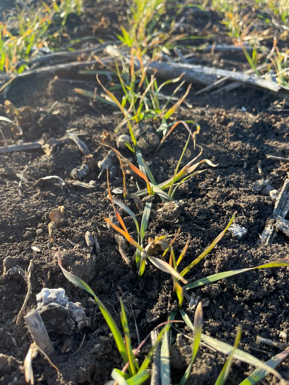 На большинстве полей проявились заболевания неинфекционной природы в виде пожелтения и усыхания кончиков листьев, антоциановой окраски, загнивание всходов, аморфного развития листьев и стеблей.