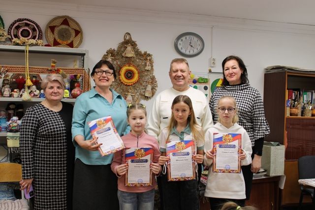 Руководитель филиала ГКУ КК ЦЗН Краснодарского края в Щербиновском районе наградил дипломами учеников МБУ ДО ДШИ им. Д.С.Остривного ст.Старощербиновской за участие в муниципальном этапе краевого конкурса детских рисунков «Я выбираю безопасный труд – 2025».
