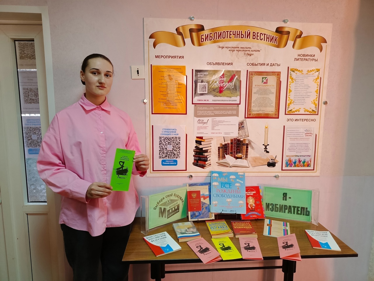 В рамках Дня молодого избирателя в Мкук-Новощербиновская Сельская-Библиотека 13 марта прошла акция по раздаче информационных буклетов «Молодому избирателю», направленная на повышение правовой культуры в молодежной среде, стимулирование электоральной активности будущих избирателей на выборах в органы государственной власти и формирование правильного отношения к институту выборов в государстве.