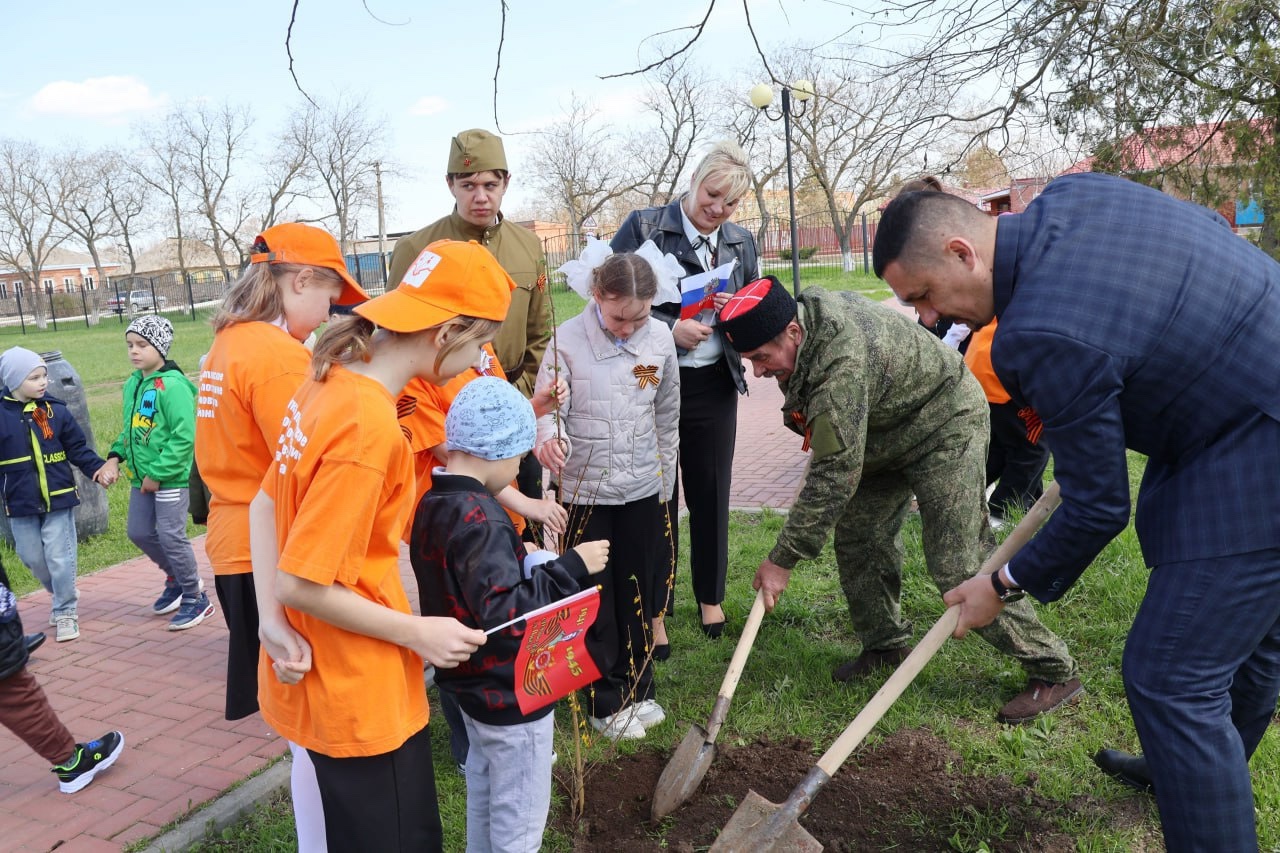 Сегодня в селе Ейское Укрепление посадили деревья и кустарники в память о Героях войны.