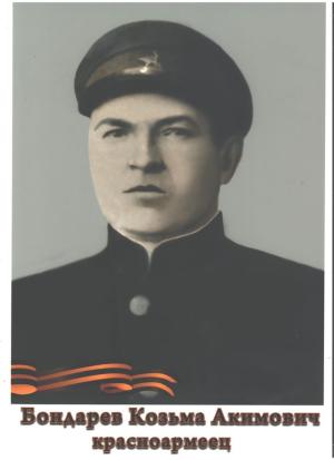 Очень долго моя тетя, Лой Анна Кузьминична, родная дочь дедушки, искала сведения о нем, писала запросы, письма. Только в 1995 году наша семья получила ответ из Архива Министерства Обороны Российской Федерации: «Бондарев Козьма Акимович, погиб на поле боя 14.02.1942 года в районе села Раздольное Александровского района Донецкой области.»