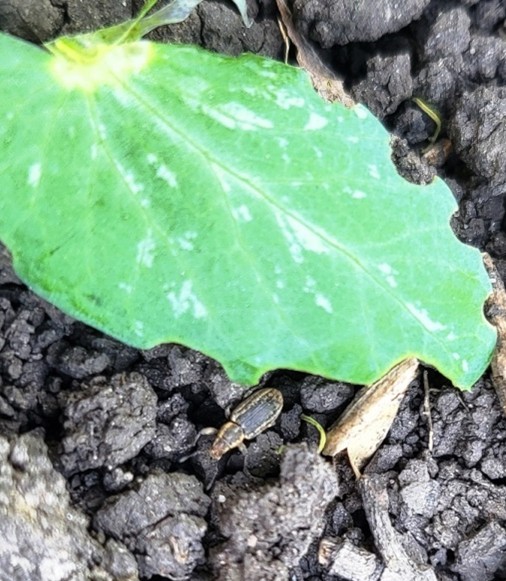 Повреждения первых листьев всходов и точки роста при высокой численности вредителя может привести к полной гибели растений.