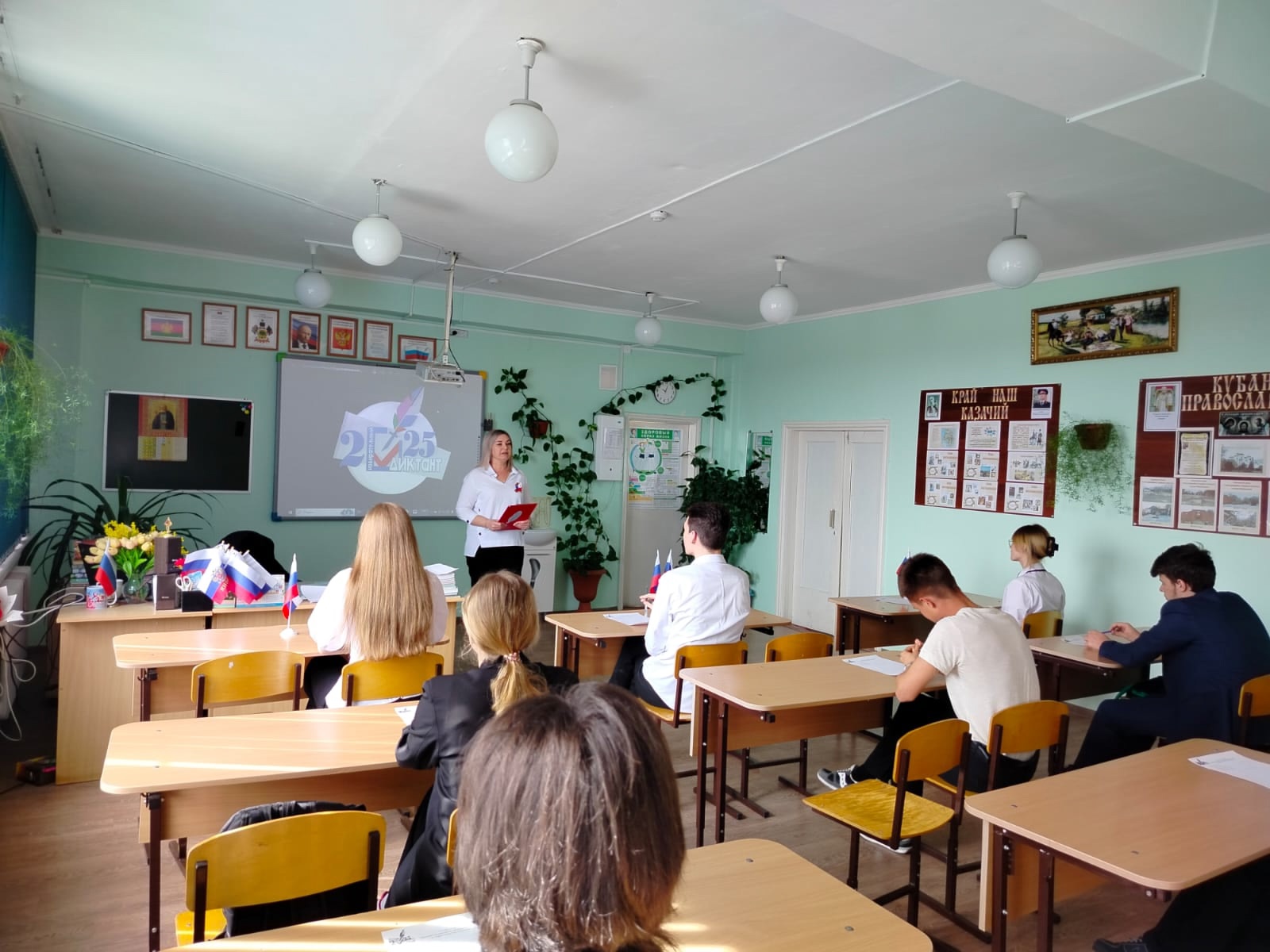 25 апреля 2025 года на площадке МБОУ СОШ №13 им. Г.Ф.Короленко пос.Щербиновский учащиеся 10 -11 класса приняли участие в Избирательном диктанте.