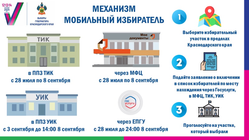 Воспользуйтесь своим правом принять участие на выборах Губернатора Краснодарского края в удобном для Вас месте!