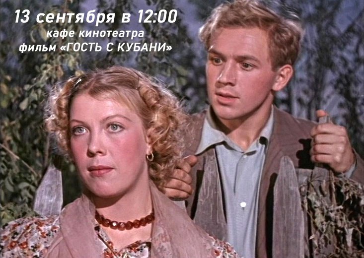 13 сентября в 12:00, в день образования Краснодарского края, кинотеатр приглашает на бесплатный показ фильма «ГОСТЬ С КУБАНИ» СССР
