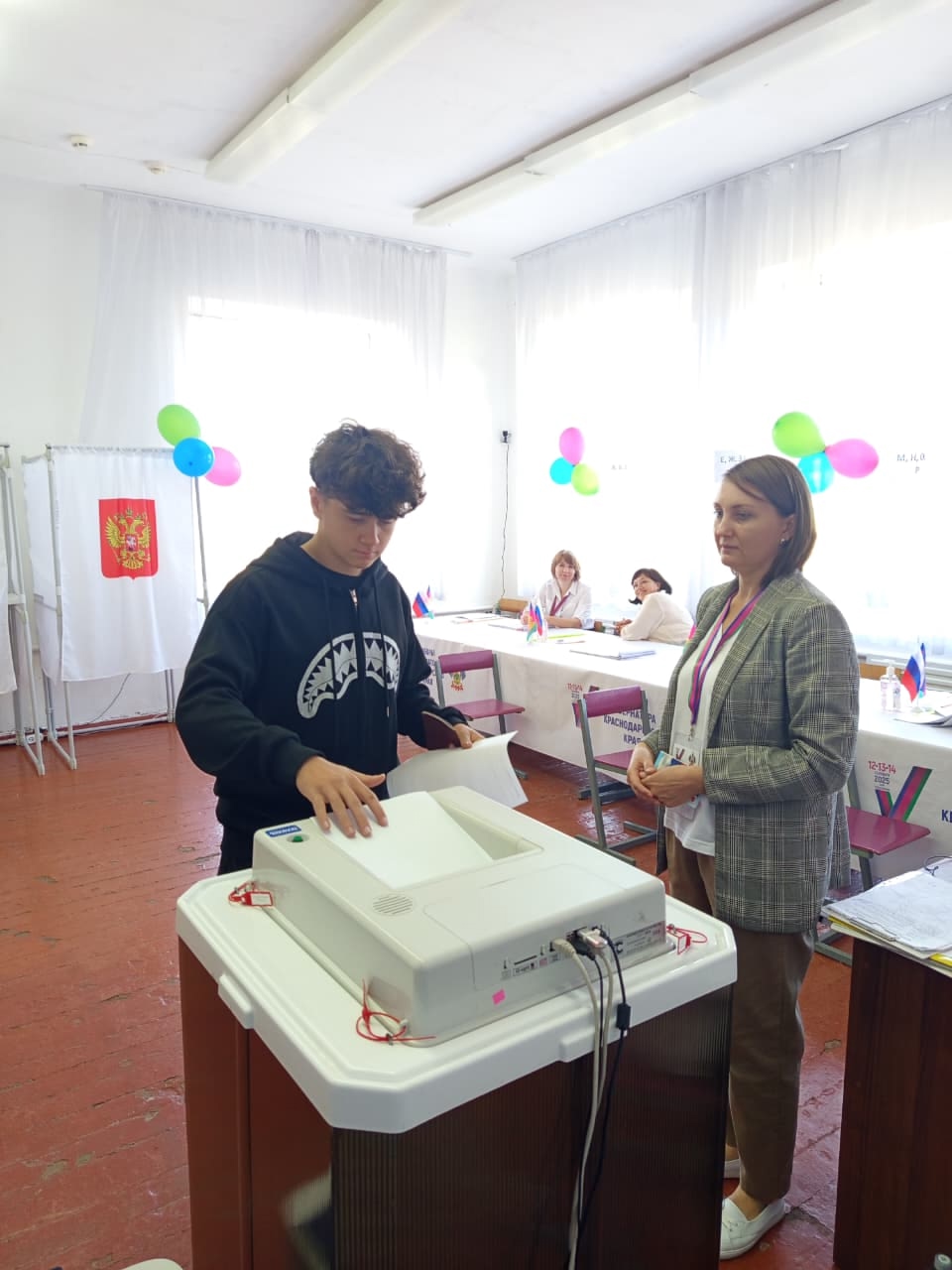 Второй день голосования проходит активно и динамично. Участие избирателей продолжает расти, особенно привлекательными стали участки, оснащенные КОИБами — комплексами обработки избирательных бюллетеней. Современные устройства вызывают особый интерес у молодого поколения, дети охотно наблюдают за процессом сканирования голосов.