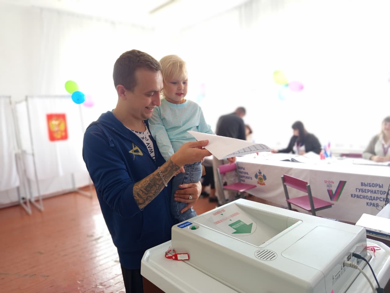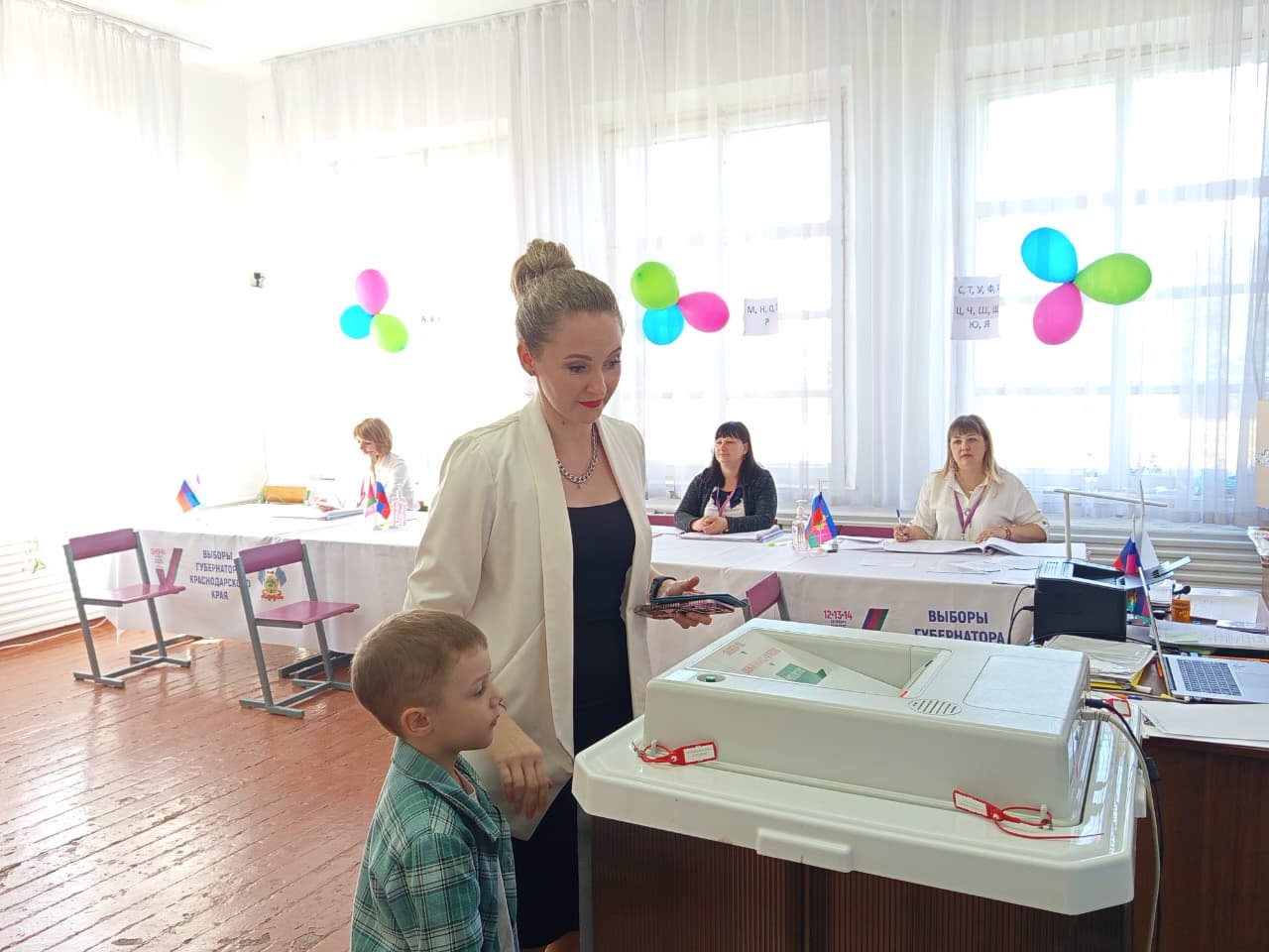 Кроме современных технологий, внимание привлекает праздничная атмосфера на участках. Родители приводят маленьких детей, чтобы прививать уважение к избирательному процессу уже с раннего возраста.