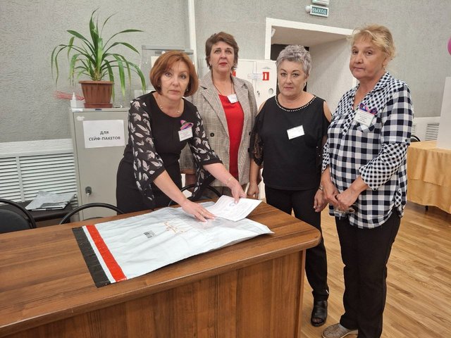 При проведении голосования на дому, как только члены УИК возвращаются на избирательные участки, бюллетени перемещают из переносных ящиков для голосования в специальные сейф-пакеты. Причем для каждого переносного ящика используется отдельный сейф-пакет.