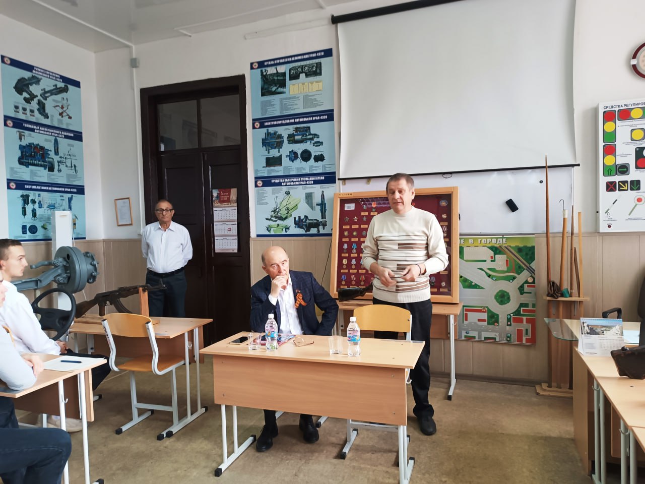Сегодня в ДОСААФ Щербиновского района прошел Урок мужества, посвященный Дню призывника для курсантов ВУС. В мероприятии приняли участие: председатель Щербиновского районного Совета ветеранов Михаил Кряжов, председатель первичной ветеранской организации ветеранов Афганской войны Василий Котенко, преподаватель ДОСААФ, кадровый офицер, воин-афганец Игорь Сергиенко. Михаил Николаевич говорил о том, что сейчас Запад пытается намеренно фальсифицировать историю России, чтобы подстроить ее под свое понимание мира. Они навязывают свое представление для того, чтобы сделать нас слабее; для того, чтобы подчинить своей воле. Но мы четко знаем, где проходит грань между добром и злом, знаем, что историю переписывают не победители, а предатели. Мы помним историю своей Родины и передаем эти знания нашему подрастающему поколению. Мы помним, какие испытания выпали на долю Советского Союза и его многонационального народа, в ходе вероломного нападения гитлеровской Германии. Помним узников концлагерей, угнанных гитлеровцами или уничтоженных в газовых камерах, расстрелянных, забитых, умерших от голода и холода. Помним разрушенные города и села, выжженную землю, голодных детей, помним Сталинградскую битву, Голубую Линию, битву на Курской дуге, Брестскую крепость, Дом Павлова, блокаду Ленинграда и т.д. Михаил Николаевич рассказал о первом Герое Советского союза, нашем земляке Анатолии Васильевиче Ляпидевском и Кавалере трех Орденов Славы Павле Ильиче Арчакове, имена которых носят школы в ст. Старощербиновской. Котенко В.В. поделился воспоминаниями о службе в Афганистане, о долгих и опасных дорогах в горах, как помогали друг другу в тяжелейших испытаниях, о том, что некоторым нашим землякам не суждено было вернуться из Афганистана. Поделился некоторыми «секретами» профессионального мастерства из опыта срочной службы в Германии. О том, что, что бы ни говорили современные аналитики об Афганской войне, сегодня можно с полной уверенностью сказать, что советские солдаты честно и самоотверженно исполняли свой долг. Сотни тысяч воинов-афганцев с достоинством прошли жестокие испытания войной. Преподаватель МО ДОСААФ России Щербиновского района Краснодарского края Сергиенко И.А., кадровый офицер, воин – афганец, пожелал ребятам всегда быть ответственными, исполнительными и дисциплинированными водителями. Гости пожелали курсантам здоровья и мирного неба, чтобы никогда и никому из них не пришлось брать оружия в руки.